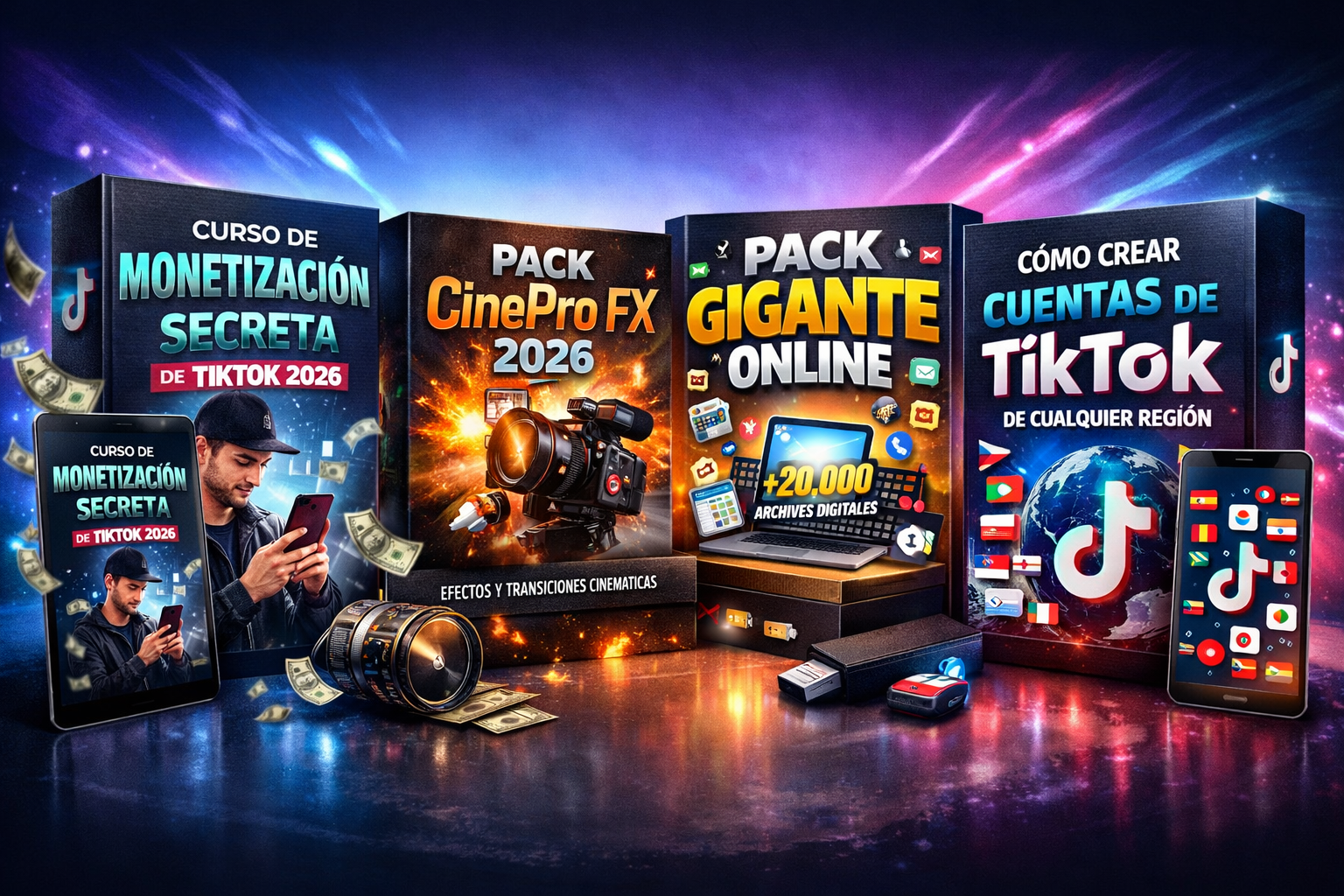 Descubre nuestra colección de productos digitales diseñados para llevar tu presencia online al siguiente nivel: formación avanzada en monetización, packs profesionales de edición, recursos digitales masivos y estrategias exclusivas para expandir tus cuentas.